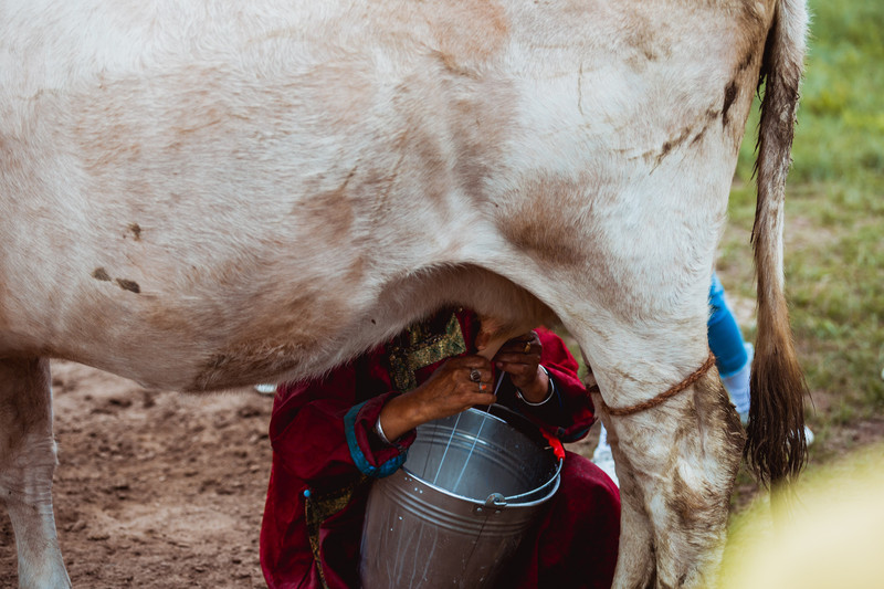 Day4游牧体验——乌拉盖九曲湾——金花滩今天早上起来的比较早,是因为要体验游牧生活,我们6点集合乘坐观光车前往养牛人家,在这里看乌日娜挤牛奶,做奶豆腐,前来体验的有不少 北京 来的亲子团,让孩子观看一下挤牛奶和手工制作也是不错的选择。