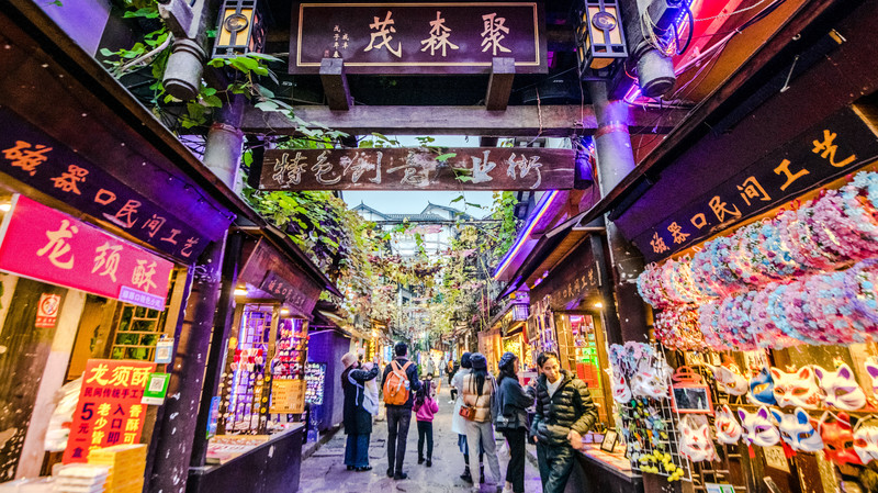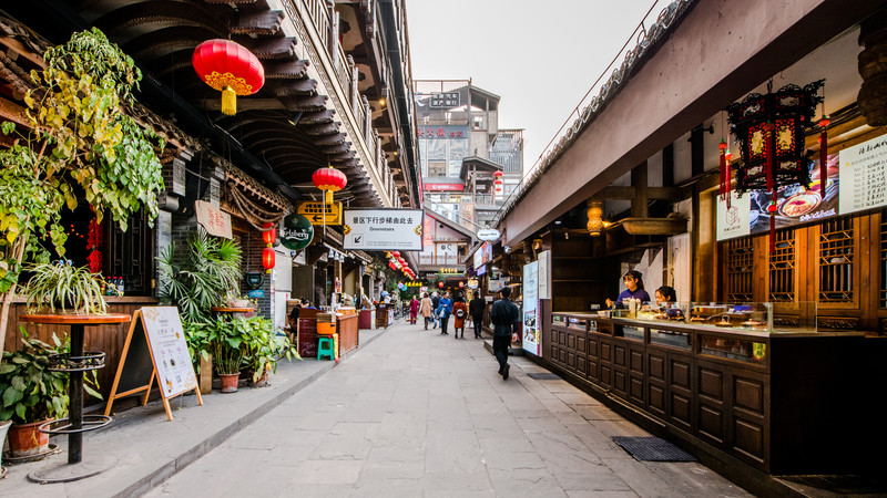 在磁器口古镇新旧建筑相间的街道上,酒馆、茶馆、食肆、银器店、小吃店等和谐相处。它们可以是临街吆喝的明铺,也可以是小巷道里、吊脚楼上等待发掘的惊喜。