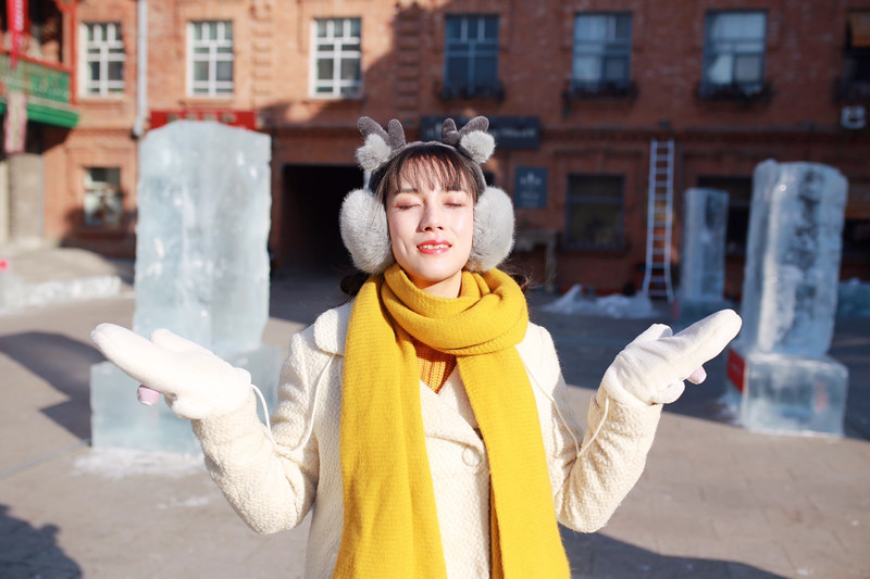 关于拍照的穿搭,雪地里浅色的衣服显纯洁,明亮鲜艳如红色,黄色显得耀眼,拍出来效果都不错。我带了2件大衣,1件羽绒服,哈尔滨的白天大衣还是能HOLD住(还是要多贴暖宝宝)其他地方一定要羽绒服!没风的时候我只穿毛衣拍照也能坚持个十来分钟,最怕就是刮风,那种刺骨的寒冷让你一秒钟都不想在外面待着。