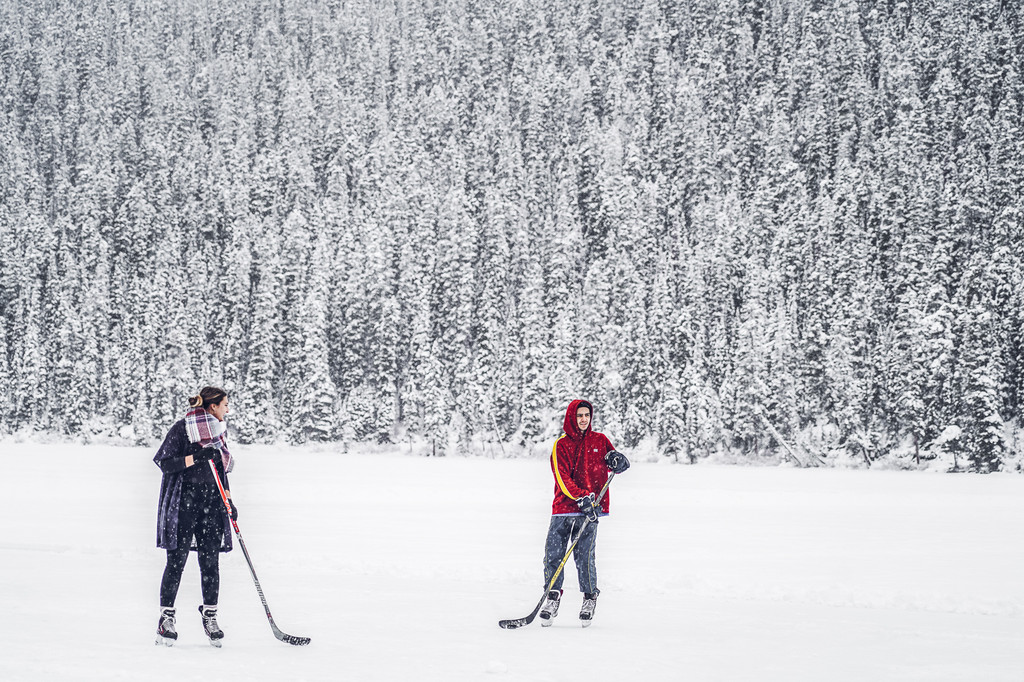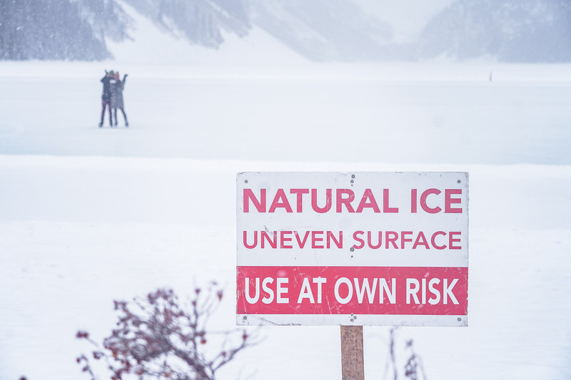 冬季的露易丝湖面有很多的冰雪娱乐,比如徒步、溜冰、冰球、马拉雪橇、狗拉雪橇等等,湖面冰的厚度可容大卡车通行,所以提示风险自负,是因为湖面有一部分并没有结冰,切记不要靠近就好。