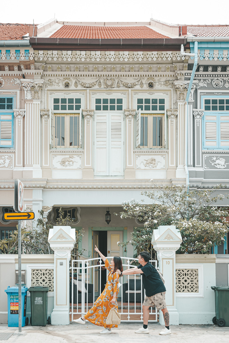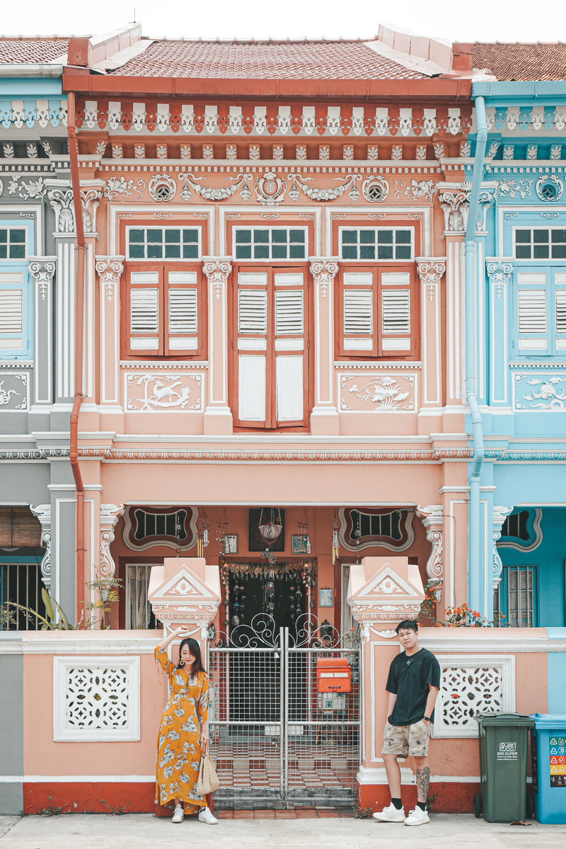 两排古董屋现在已经是新加坡热门的网红打卡地之一了,不少人慕名而来拍拍这些彩色小屋们,我和猫叔也选了几家颜色好看的屋子拍了组照