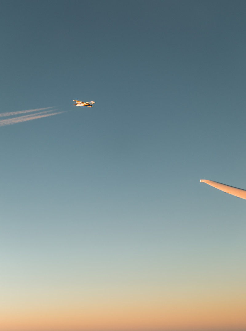 在天空中遇到另一架飞机,离我们越来越近,最后擦机而过。