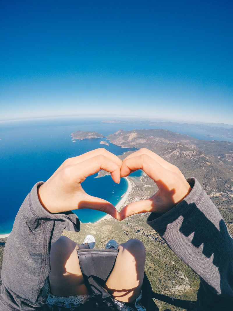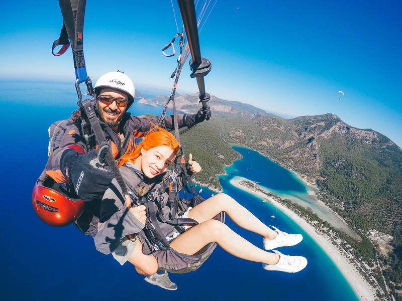 费特希耶的滑翔伞,我从2000米的高空跳下。其实滑翔伞也非常平稳,没有失重的感觉,只是在快降落的时候,教练问我想不想体验一下更刺激的转圈圈,于是我“表面风平浪静,内心慌的一批”得答应了。转圈的时候,失重感就来了,这酸爽的感觉,才让我意识到这才是冒险者的挑战啊。转了两圈后,我赶忙和教练说“it's enough”,教练便停了下来。降落后我问乔治 有没有玩,他说不敢,手心还都是汗,是胆小鬼无疑了。