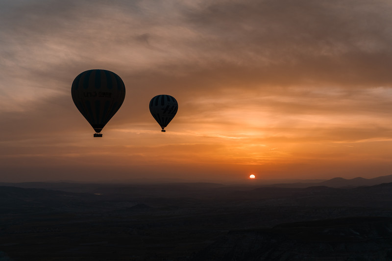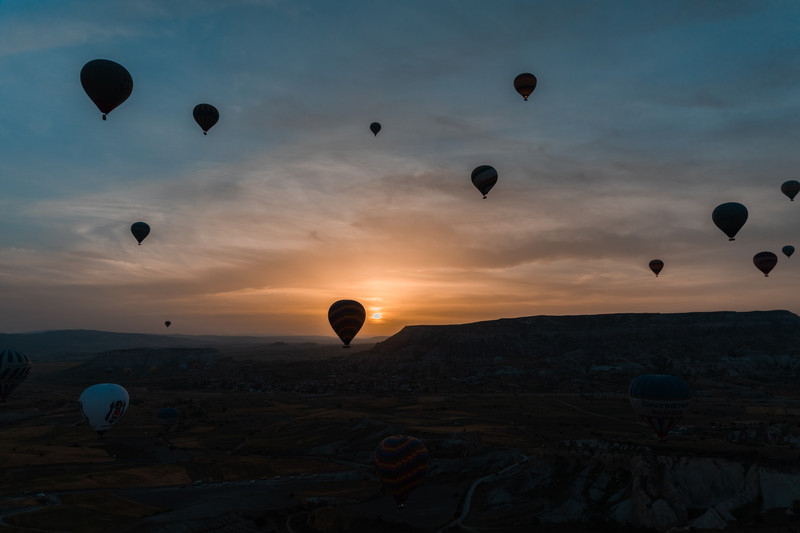 一切准备就绪后,我们就上了篮子,一个篮子20个人左右。在我还没感觉时,热气球已经离开地面缓慢升空了,热气球很平稳,所以害怕的情绪完全没了。我们是第一批升空的,之后别家的热气球也渐渐升空了。天空中越来越多的热气球,很壮观。到了天上,反而不冷了,因为我站在篮子中间,每次点火的时候,都给我带来一丝热量。大家都在疯狂自拍,而我在疯狂拍热气球。天慢慢亮起来了,日出带来了太阳的光,将山谷照的更加明亮和温暖,热气球也更加好看了。在天空中飘了1小时后,我们降落了,工作人员开香槟庆祝,给大家发了奖牌。大概热气球也是一场生命的冒险吧。