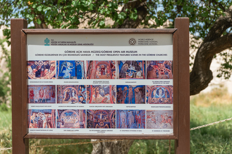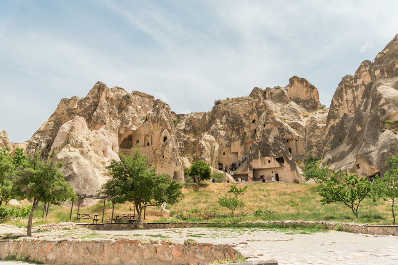 下一站露天博物馆,算是 卡帕多奇亚 最大最正规的景点了,因为需要买门票进,游客很多。这里类似于我们的 敦煌 莫高窟,山洞里面有残存的壁画,不过规模小很多,也没那么辉煌的感觉,不能拍照。我们觉得正午天很热,又觉得一般,逛不动了便在门口的石阶上坐着等我们的团友。