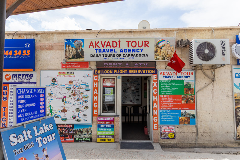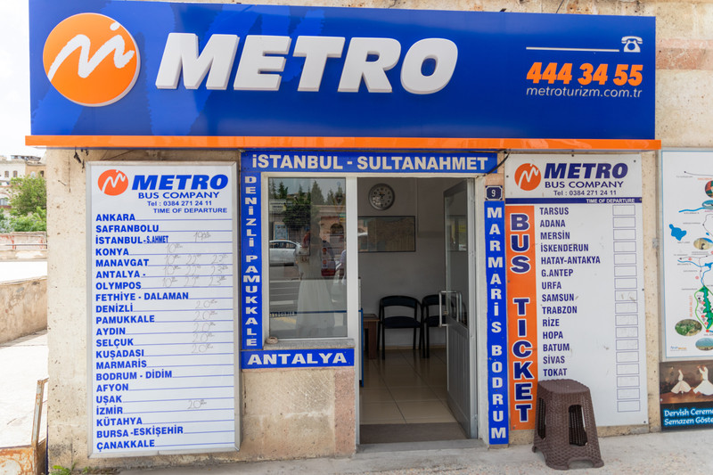 格雷梅镇很小,走着走着我们就来到了车站,准备买明晚去 安塔利亚 的夜巴票。大巴公司都在一排门面,很多家,最好买Metro的,公司最大。但是我们去的时候已经卖完了,于是我们就买了suha家的,格雷梅 — 安塔利亚 ,10:30出发,路程10小时,120 里拉 一个人。