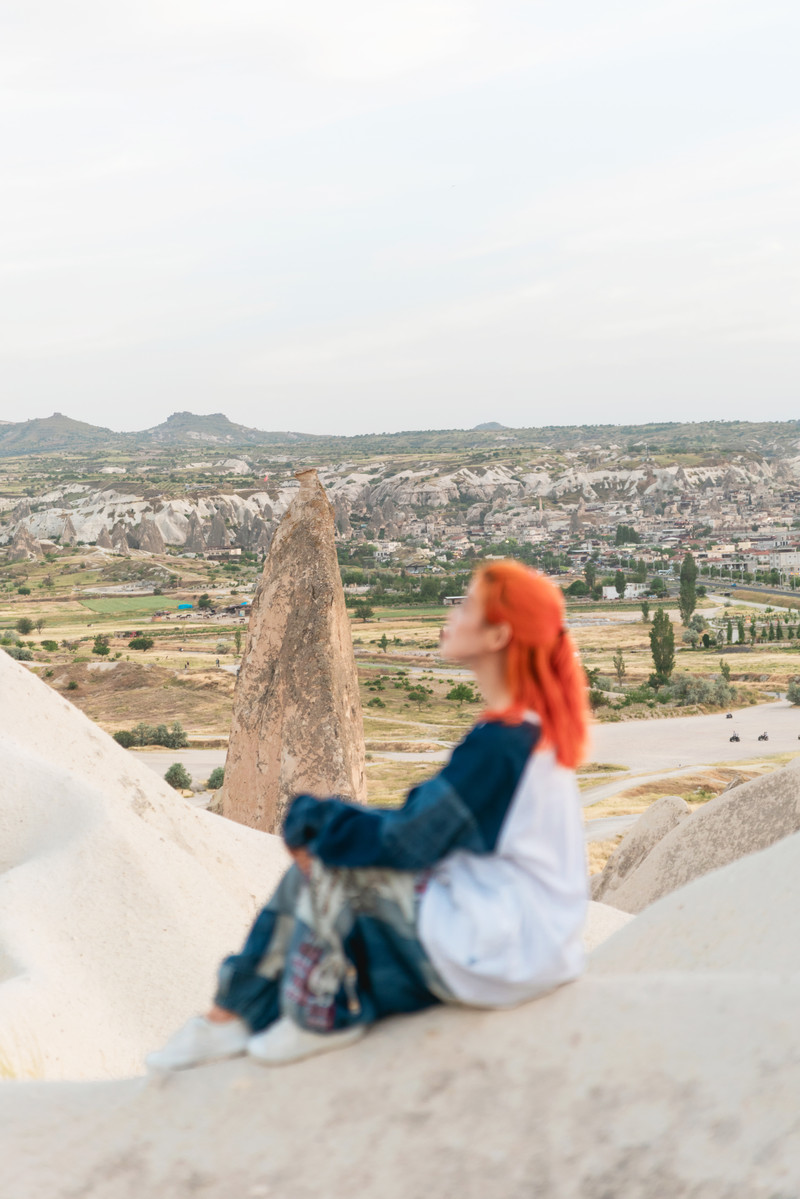 最后一站是精灵烟囱,导游说两条路可选,一条逛向烟囱,另一条去山顶看全貌。大家都去了烟囱,我们选择了去山顶。