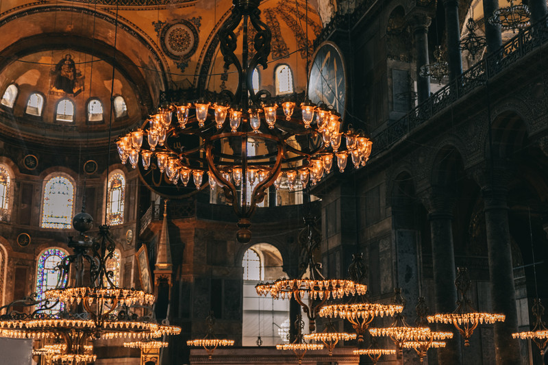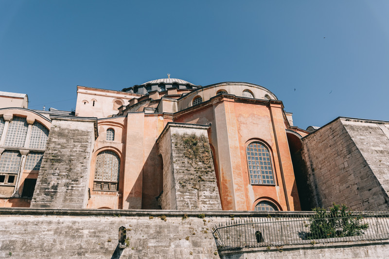 圣索菲亚大教堂,有近一千五百年的历史,因巨大的圆顶而闻名于世,是一座拜占庭式建筑。它的特别之处在于平面采用了 希腊 式十字架的造型,在空间上,创造了巨型的圆顶,而且在室内没有用到柱子来支撑。在1519年被 塞维利亚 主教座堂取代之前圣索菲亚大教堂一直是世界上最大的教堂。