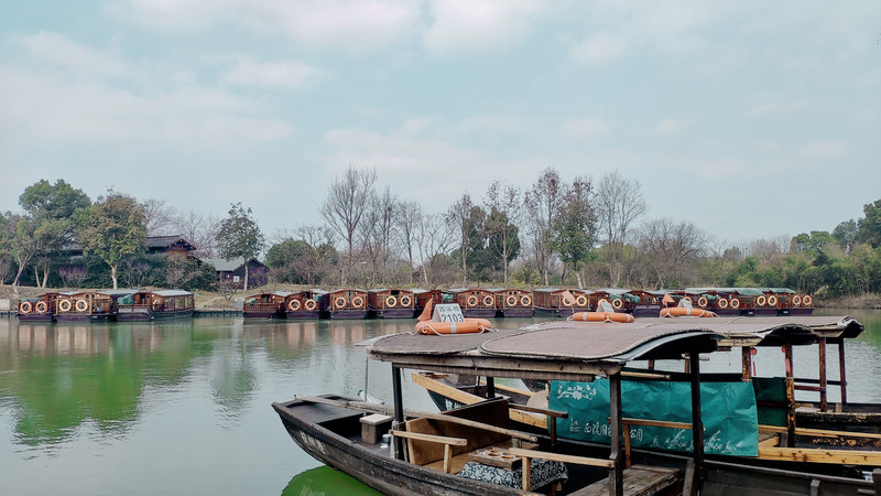 我们坐着公交车在周家村下车后,买上门票(买门票技巧后面贴上)后进入园区,这一站是坐摇橹船的始点,不过因为冬天,风景会差些,就决定步行游览。