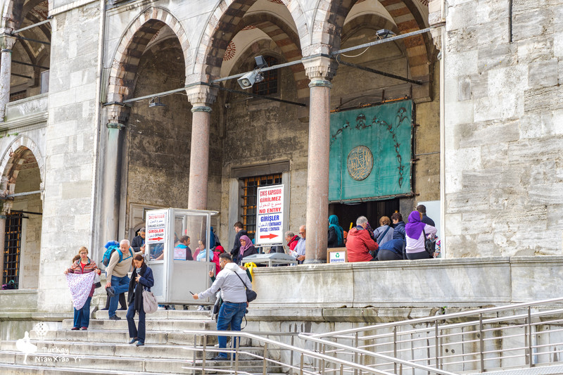 游客需要从清真寺右侧的旁门进入,正门只供祈祷的人进出,每天会有3个时间段供游客参观,正门会有公告具体时间