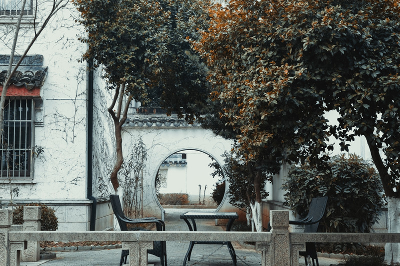 只是天气已经很阴了,很快就要下雨,白墙黛瓦在灰暗的天空的衬托下如同一幅水墨画。
