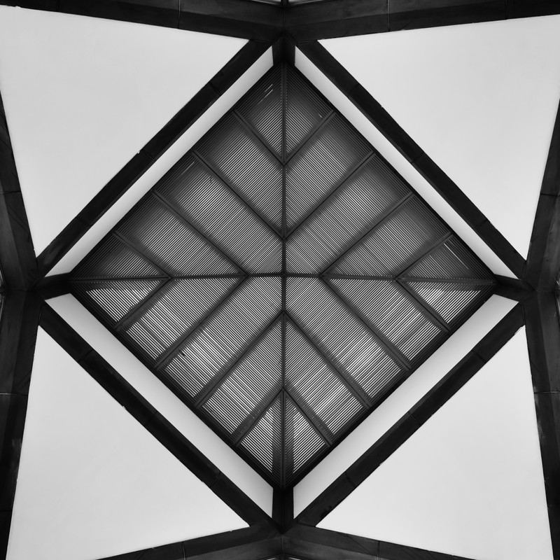 屋顶上金字塔形的玻璃天窗让博物馆内充满自然光线,在大门、天窗廊道、凉厅及各展厅都可以看到这个特点。