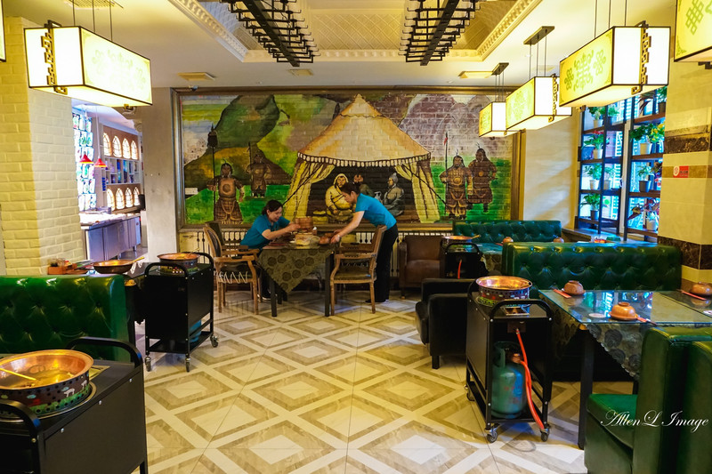 古朴的门厅里飘荡着淡淡的奶香,一下子唤醒了仍困在朦胧睡意中的我,仔细打量,餐厅里的各种布置都带有蒙古族特色元素,浓浓的草原风情迎面而来。
