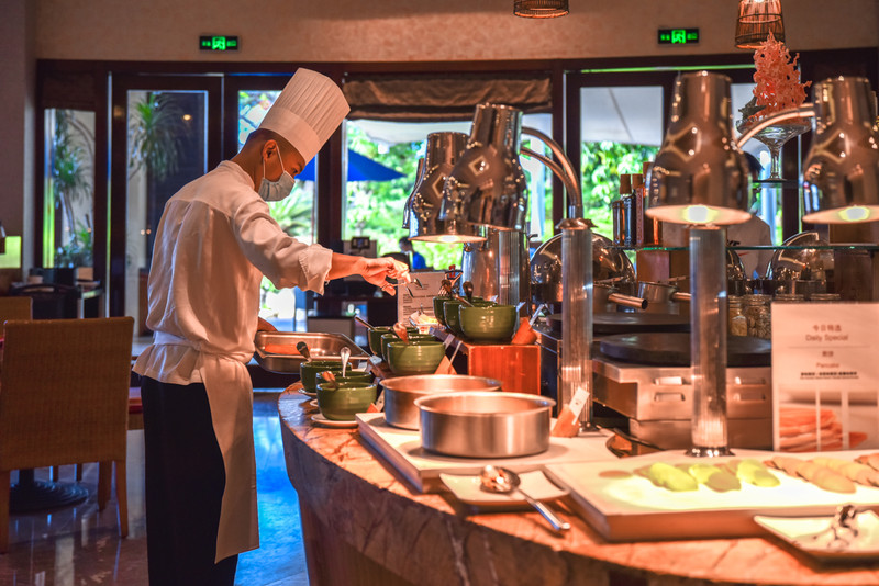 位于主楼一楼的万豪咖啡厅,是全日餐厅。早间,是每一个住客都能获得能量满满早餐的地方。种类多,食材新鲜,服务及时,环境极好。最晚到11点,你都可以在这尽情享用。“让你既能睡懒觉,又能美美的吃饱”的全日制早餐,早餐可不仅仅是早上而已哦!万豪咖啡厅日常的自助早餐时间为6:30-11:00,而11:00之后直到21:00,仍然可选择“全日制早餐”:精选3套特色美式、中式及健康早餐搭配不同饮品,你可任选其一免费享用。