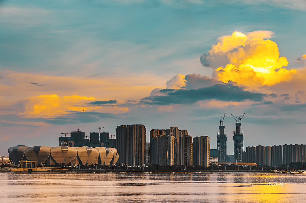 慢慢的,我们就等来了雨后绝美的火烧云,真是上天眷顾,镜头下的钱江风光,美出天际。