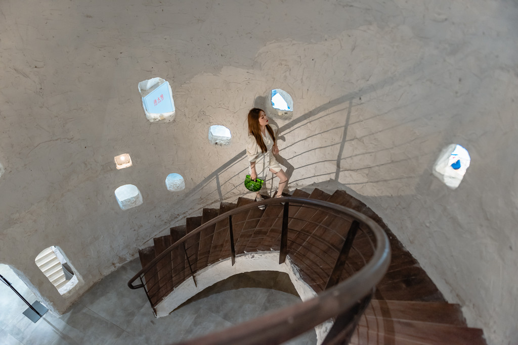 旋转楼梯是他们家的特色,拍照时可以由上往下拍,拍照的人很多,要等待一个好时机