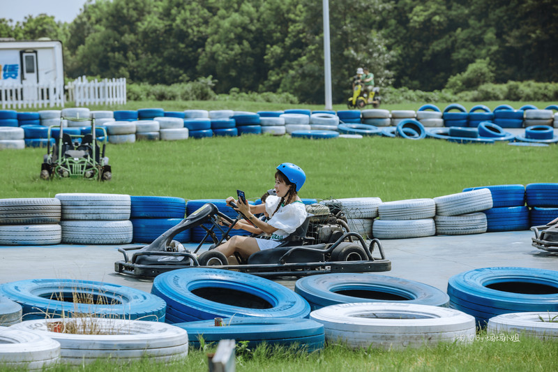 大草坪上第二热门的项目,当属卡丁车了,总是排着长长的队伍,却难掩人们的热情和期待,从滑草上下来,我们也直奔这里,加入了排队的队伍。