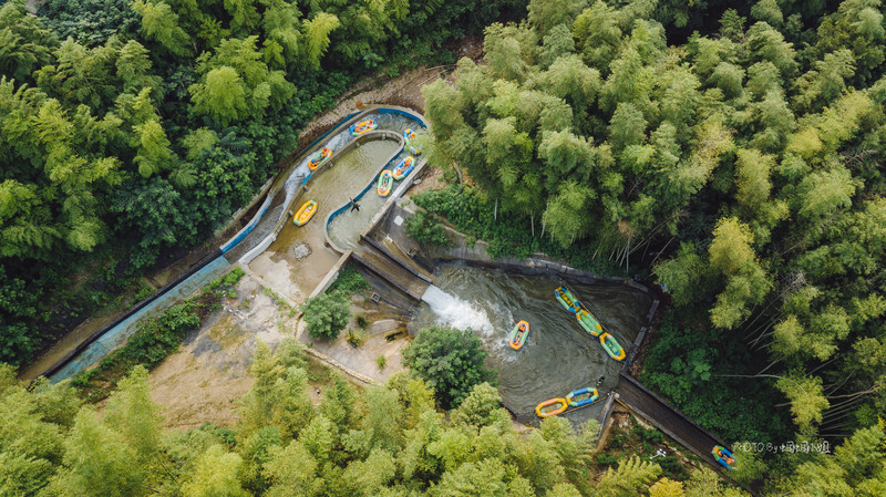 漂流的起点位于景区的“小九寨”湖泊处,背靠一片竹海迷宫,再网上走,还有茅山问道,可以在竹海间穿行,自然风光和环境都超一流。而这个“小九寨”湖泊,也是一个小型的蓄水池,为的,是让漂亮的时候有更大的水量,也让我们体验更多的快乐。