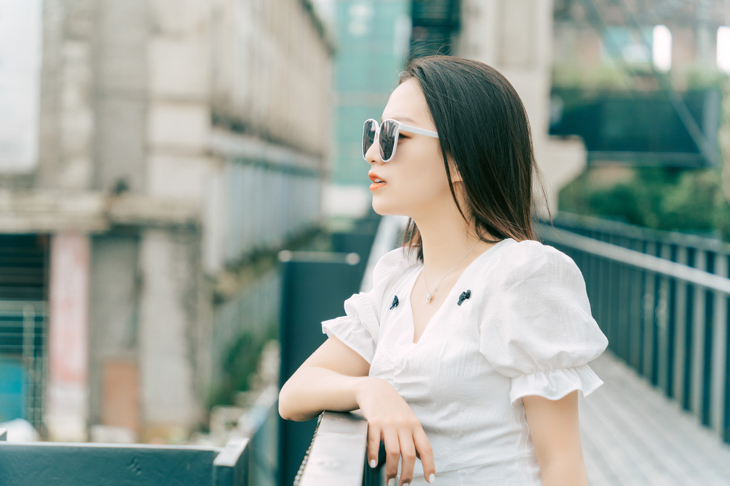 带上墨镜既能遮过强的阳光又可以扮酷。
