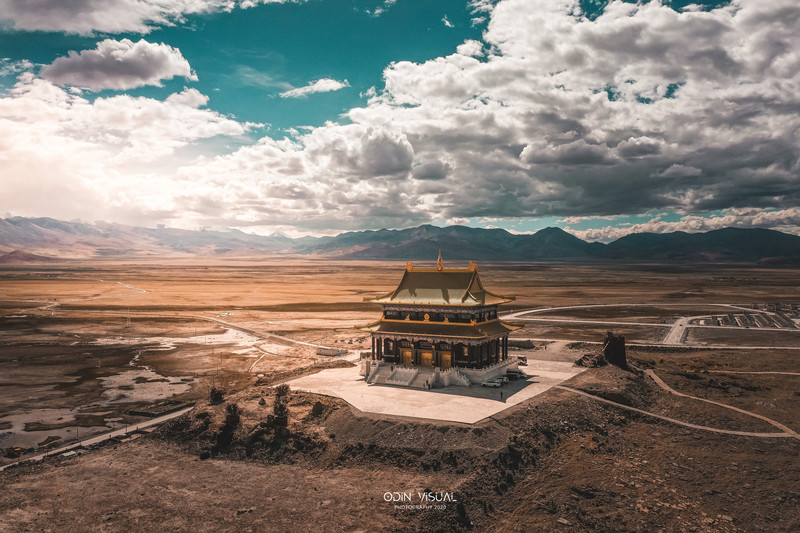 这座关帝庙在航拍镜头下,超有盗墓游戏的画面感 风和日丽的阳光下,金灿灿的大殿越发光泽,特别在这四面空荡的平地上拔地而起 就像打开了另外一个空间的大门。