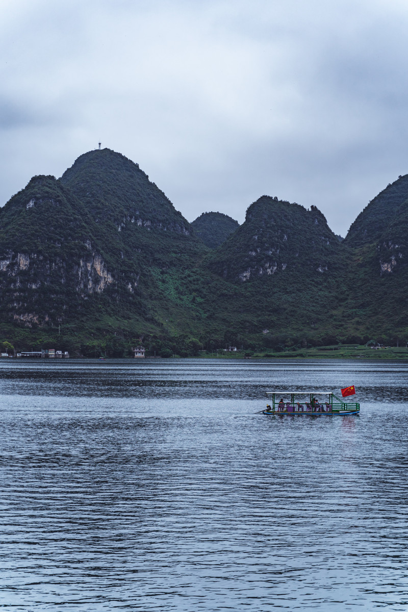 入秋之后,广西能看到日落日出是比较难得的。今天运气不错,看到了一点点落日的耶稣光,后期调的色调浓了一些。江水两侧的山峰高且险,大气悠远,漓江的喀斯特地貌是最美的。