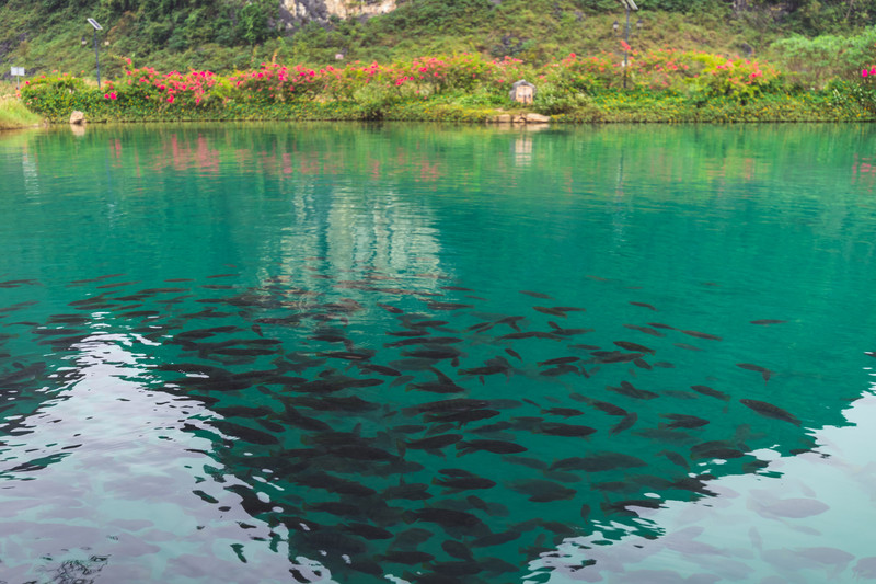 被称为靖西八景之一的“鹅泉跃鲤三层浪”景象,便是由此而来。据说人在泉边大声呼喊,鱼受惊跳出水面,因为被称为奇观。现在的鱼,不会被惊吓,只会为了鱼食冒出水面。