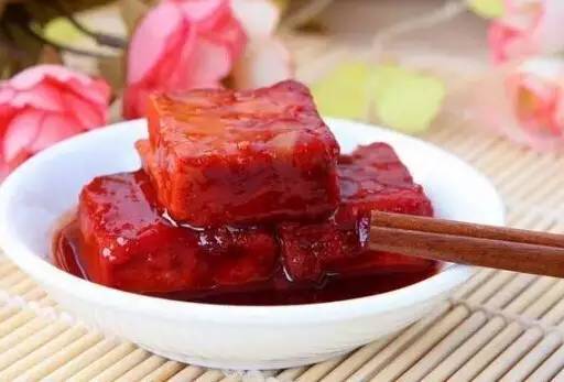 腐乳表面附有一层红色物质,是纯天然的添加剂。这种成分叫红曲,是天然的血脂清道夫。腐乳含有丰富的大豆异黄酮,能有效地预防和抑制白血病,具有抗肿瘤效应。
