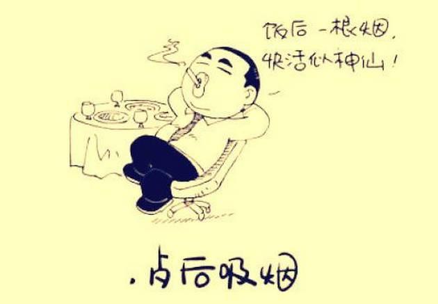 饭后一支烟;如厕一支烟;事后一支烟;晨起一支烟;酒桌一支烟。