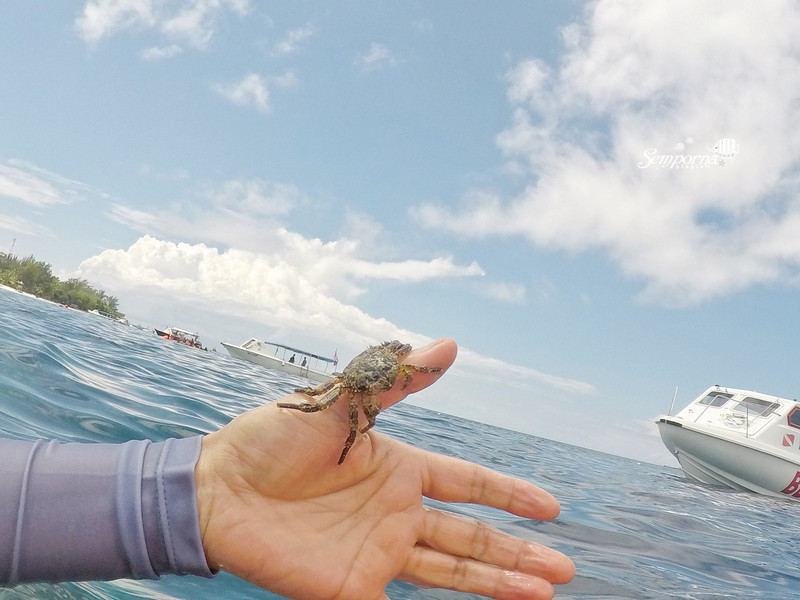 浮潜的时候,常常会把这种小螃蟹带出水面~