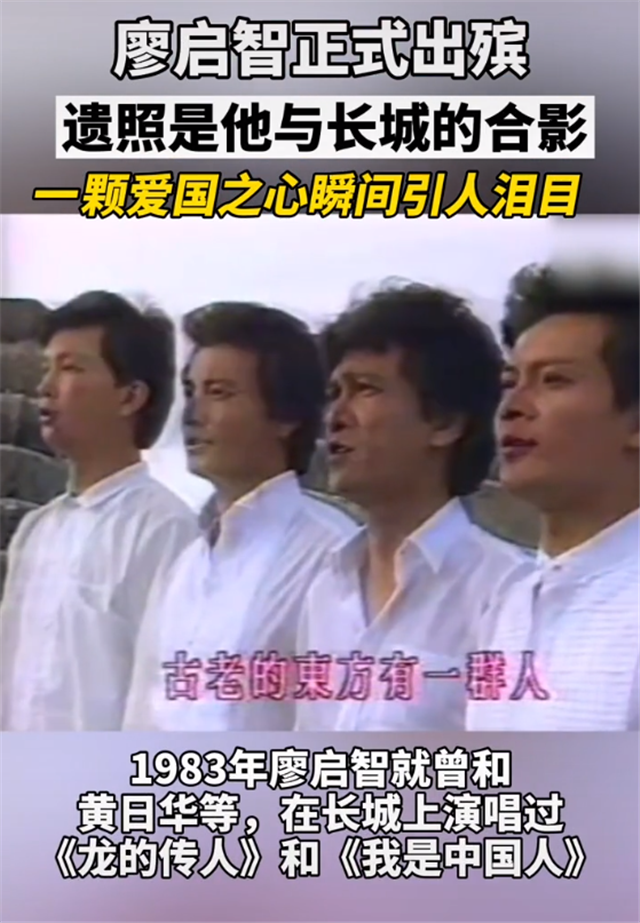 廖启智在长城照片,还有一段故事,廖启智一直都是爱国艺人,他早年就到长城演唱过《龙的传人》和《我是中国人》等歌曲,在圈内,廖启智一直都有好口碑。早年香港娱乐圈存在歧视内地艺人的情况,当时拍清装戏,内地艺人都被要求剃光头,而香港艺人只需要戴头套,面对这种不公,廖启智自己剃光头抗议这种歧视。
