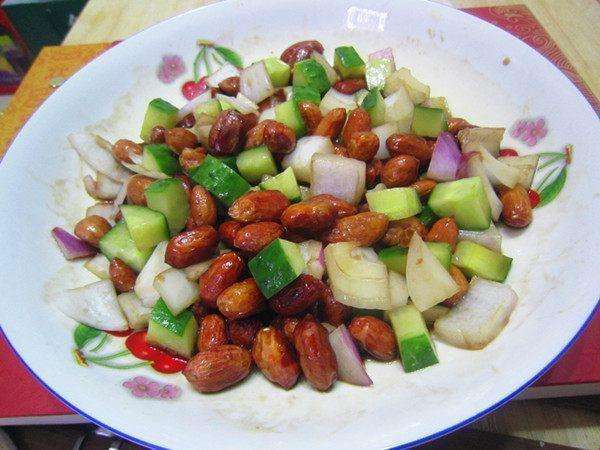 经常吃花生的人容易变胖,是因为里面的不饱和脂肪酸。但花生中的单不饱和脂肪酸有利于脂肪代谢,能降低动脉硬化和高血压的发病率。所以搭配洋葱食用,具有协同作用。选紫洋葱、花生米、陈醋、鲜味酱油、白糖、鸡精适量。