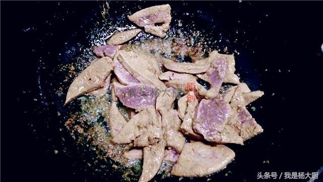 3、锅内放少许油,下入腌制好的猪肝,翻炒至猪肝完全变色,捞出备用