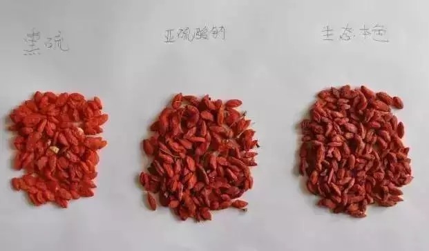 2、鲜红色的枸杞都是硫磺熏过的,自然晒干的枸杞不好看,呈暗红色。