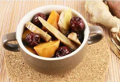 1、受凉感冒:用生姜3~4片加半勺红糖煮水喝,一日2~3次。