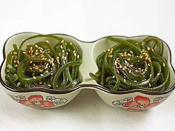 原理:芝麻能改善血液循环,促进新陈代谢,降低胆固醇。海带则含有丰富的碘和钙,能净化血液,促进甲状腺素的合成。同食则美容、抗衰老效果更佳。