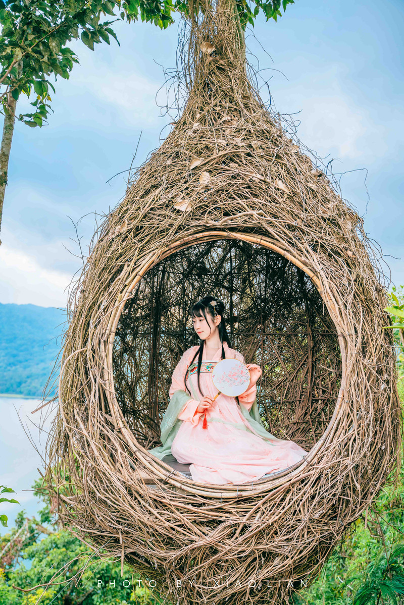 这里的游客非常少,除了我们之外也只有另外一对情侣在拍,所以我们便自在地拍得不亦乐乎,汉服和这些竹编物也是意外的契合。