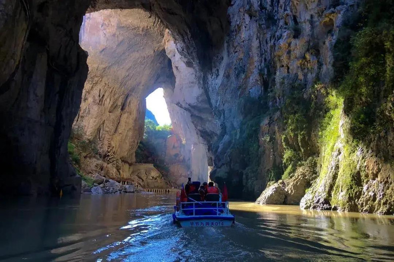 九洞天景区位于贵州省毕节市大方、纳雍两县交界处的乌江源头——六冲河流域,九洞天是目前我省已发现的天窗天坑最密集的溶洞群,也是可供乘船游览的最高大的溶洞群。