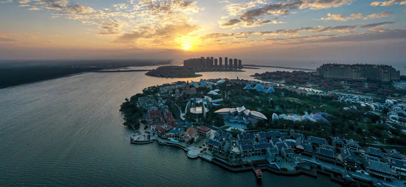 海花岛有三条免费的交通线,可以沿路游览商业街、植物园、婚礼广场等等。