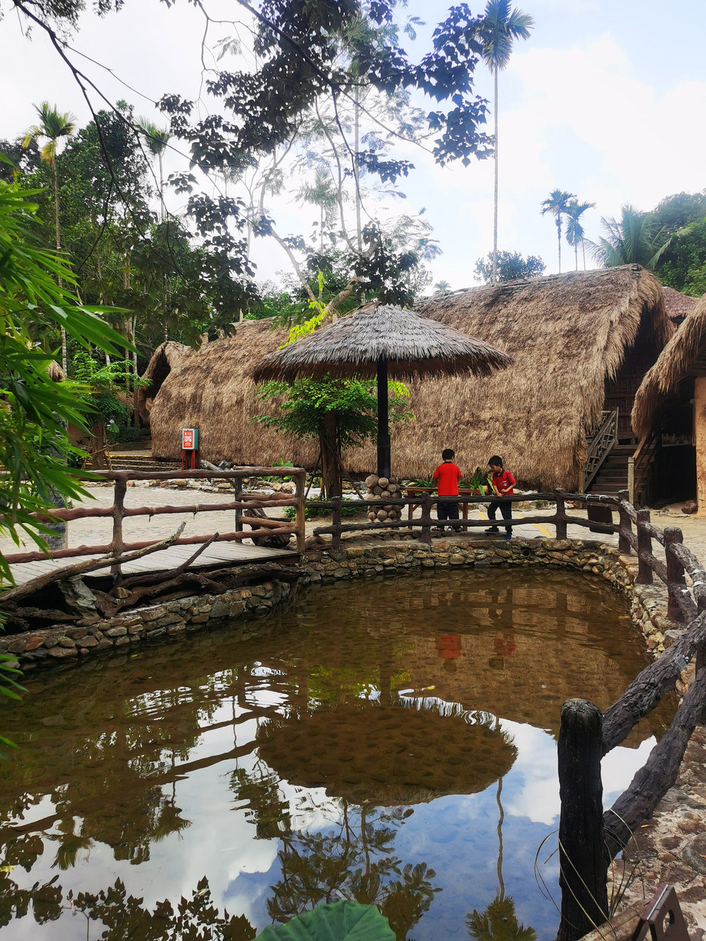 1、【槟榔谷】万棵亭亭玉立、婀娜多姿的槟榔林海和古木参天、藤蔓交织的热带雨林中,黎族纺染织绣、竹木器乐演奏技法、打柴舞、黎族妇女的文身绣面等一批濒临失传的黎族苗族传统技艺和正在消失的海南本土文化现象都可以在这边找到。