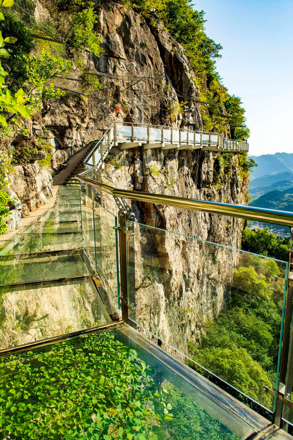 站在高约130米的玻璃栈道俯瞰四周,好一幅一览众山小的醉人画卷。