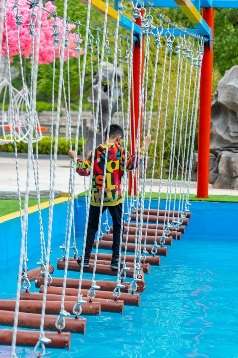 而孩子,不管现在长成多大都是孩子,七八岁可以是小朋友,五十七八岁还可以是,任何年龄,在这里都能打成一片。去魔幻城堡感受神奇之力,在兔兔乐园回归幼稚,去探险桥上充当领头大哥……