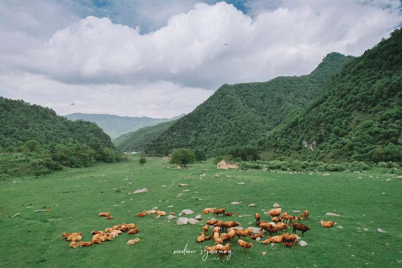 从张良庙去往紫柏山的路上我们邂逅了狮子沟牧场。