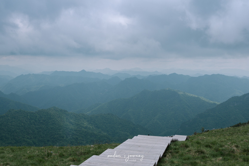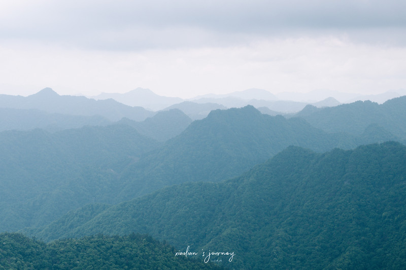随着气喘吁吁的攀爬,眼前的景致愈加广阔,远处是绵延不断的山峰,那群山在天边晕染作一副水墨画。