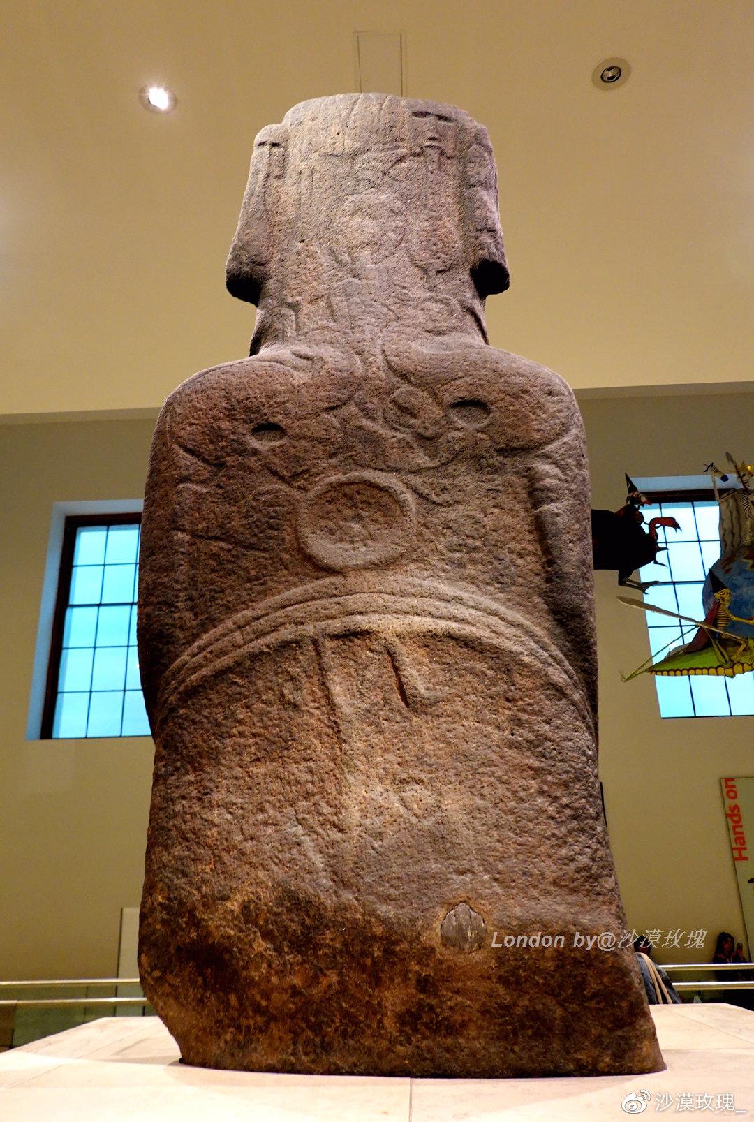 我在伦敦旅行的时候,在博物馆内找到了这尊石像。这尊石像学名为“Hoa Hakananai‘a”,在博物馆里可以更清晰地看到它腹部有“双手”,背部还雕有花纹。