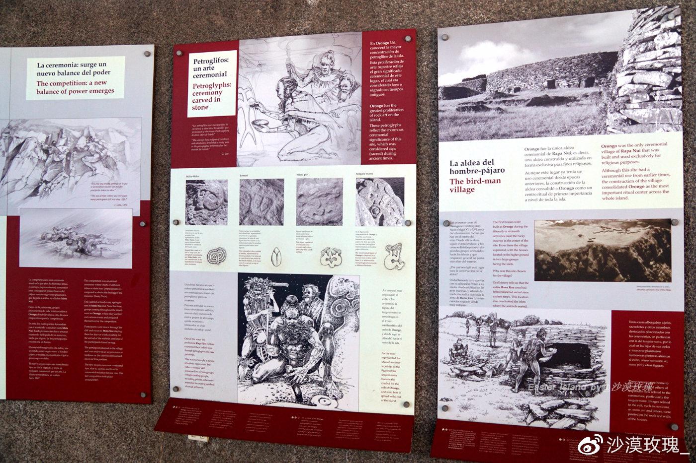 其实,鸟人村曾经有一尊高大的摩艾石像,在最大的祭祀平台前有一块指示牌,就是曾经石像的位置。1868年,英国舰队来到复活节岛,将石像挖出偷运走,今天展示于伦敦大英博物馆内。