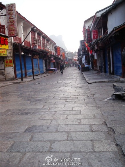说到桂林,肯定会想起小学时学的课文:桂林山水甲天下 而去过桂林的都知道,桂林的美,精华就是阳朔 刘三姐的电影效果,加上交通的便利,越来越多人去到阳朔,越来越多人看到阳朔的美 2010年10月底,广东的天还温热,正是南方一年秋高气爽之时,于是和好友来了一场说走就走的旅程,目的地就是阳朔 临时跟老板请假,临时收拾衣物,火车票都买不到,只好到汽车站坐卧铺大巴。从深圳福田车站到阳朔一夜的车程,次日凌晨6点多就到阳朔了。还是蛮方便的。 在路口下车第一眼看到的阳朔,眼前的山就是广西山标准的样子,第一次抵达,看到还是蛮激动的。 早上的阳朔,很安静,没有很多游客,商铺还没有开门。石板路清幽而寂静。 我们没有提前预定客栈,就沿着这个阳朔西街一路慢慢走慢慢看,随意找了个住宿的。 没有提前做太多的攻略,旅店休息的时候,找老板问了下大概的精华路线,简单做了个功课,一行四人就出门租了个自行车出发前往遇龙桥了。首先想感叹一下那个时候租自行车真心便宜啊,后来在其他地方再也没租过这么便宜的自行车了。