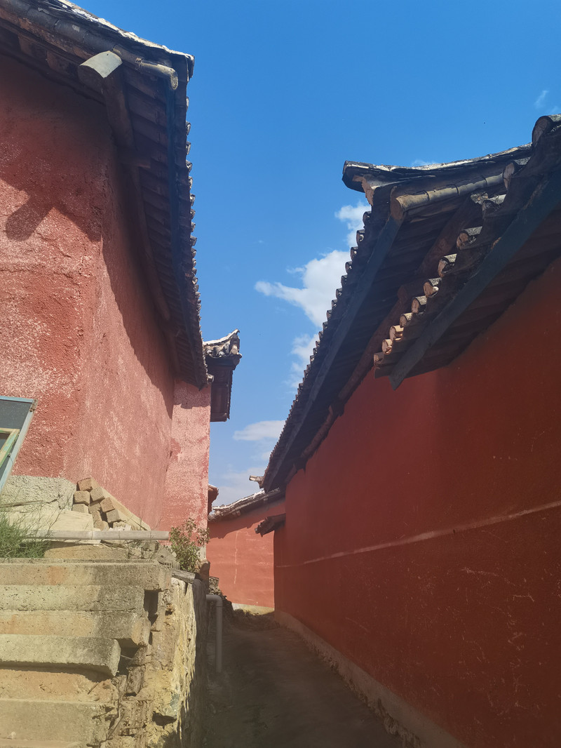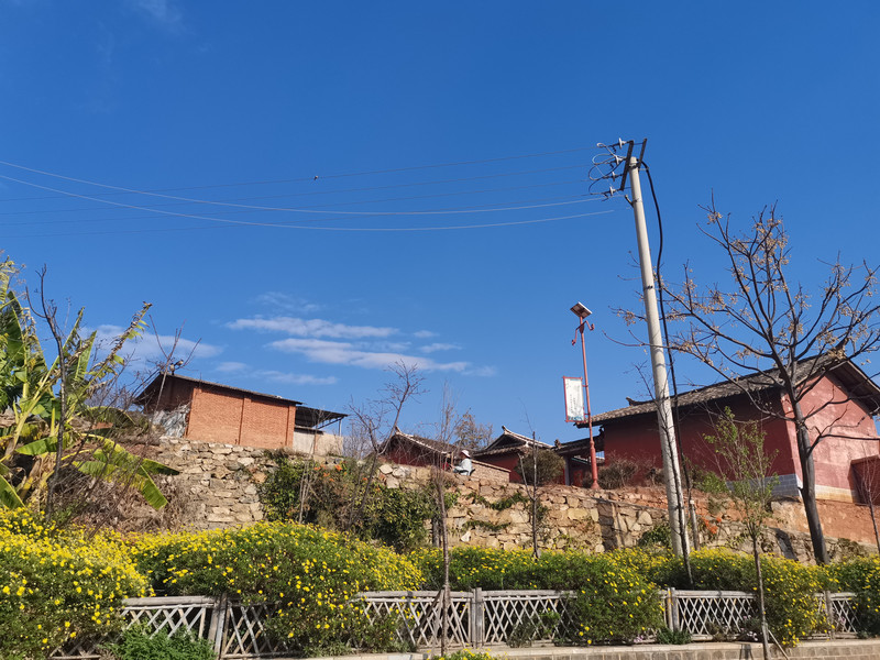 当然啦,迤沙拉也处处是景,处处值得记录。除了红色古朴的房子,除了蓝蓝天空下有趣的小鸟,更打动我的是关于这座村落的文化和历史。在游客中心给手机充电的时候和工作的小姐姐聊天,她跟我们说这里是全国文明示范村,所以呀是一律不允许扑克牌麻将这类娱乐活动的,而且这里的物价十分的平易近人,一晚卷粉只要5元钱,可见这里的人们真的十分质朴了。