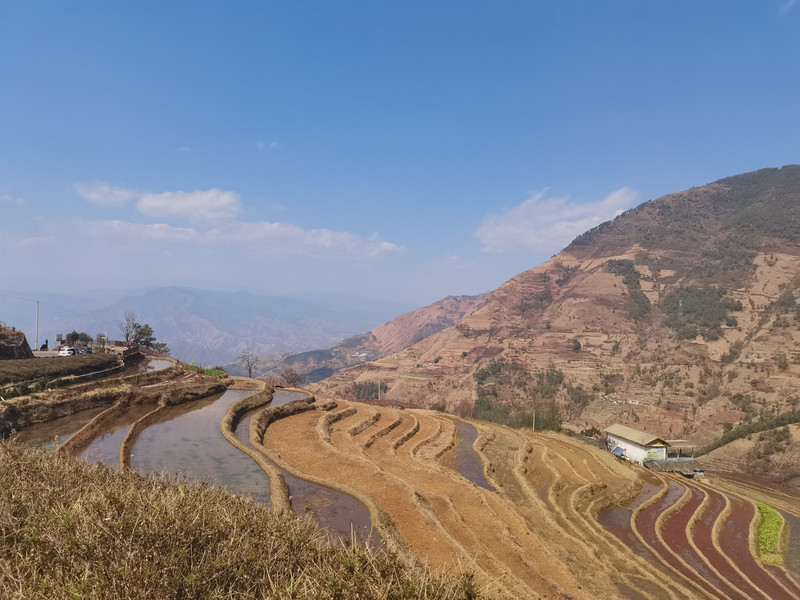 2月23日一早去农村客运站,没办法,没有去梯田的人,师傅建议只能先坐车到乡镇(到乡镇6元/人),再想办法到梯田。可巧,车上正好遇到2个人,师傅帮忙问了要不要和我一起包车去梯田,到太阳谷的时候正好又遇到一个人要去梯田,这样我们4个人就组了个队把这个小黄车包了去梯田(包车价格是200元,包含往返米易)