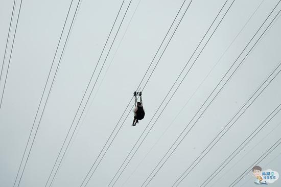 有的游客挑战时,尖叫声回荡在整个山谷;有的游客挑战时,被吓到停在半途中动弹不得,只等工作人员来解救;有的游客挑战结束后,一脸轻松,意犹未尽。