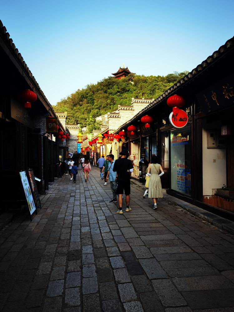 这里原先紧临长江,滚滚江水就从脚下流过。清代以后,由于江滩淤涨,江岸逐渐北移,渡口遂下移到玉山脚下的超岸寺旁。当年的西津古渡现在离长江江岸已有 300 多米距离。照片摄于西津渡古街。